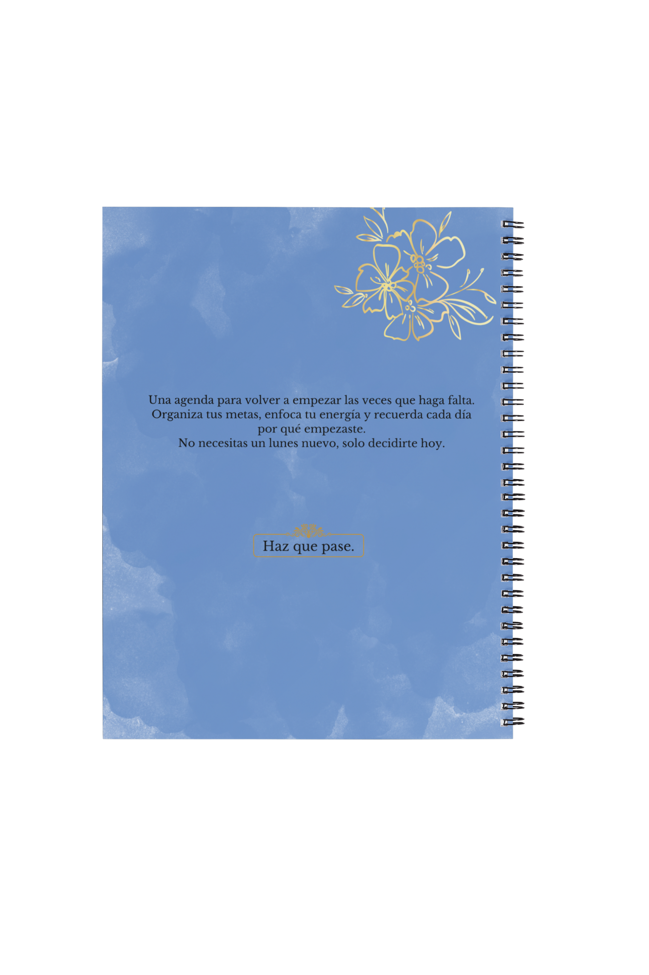 Empieza cada día con propósito, motivación y claridad. “Hoy empiezo de nuevo” es una agenda motivacional sin fechas de 160 páginas, diseñada para ayudarte a planificar tus metas, mantener el enfoque y crear hábitos que te acerquen a tus objetivos. Con su diseño en azul y detalles dorados brillantes, esta agenda combina elegancia y funcionalidad. Incluye frases inspiradoras que impulsan, espacios para reflexionar y una estructura flexible que puedes usar en cualquier momento del año.